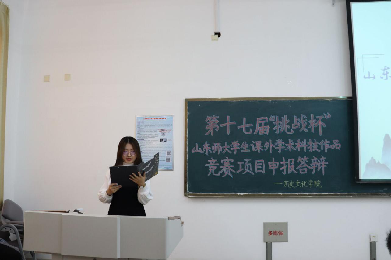 本次答辩活动分为团队展示和评委点评两个环节,在简短的流程介绍后,答辩正式开始。第一个环节,14个团队展示者依次上台进行PPT讲解,各位展示者准备充分、思路清晰、答辩措辞严谨,从前期准备、参与人员、调研问题、项目特点、实践结论等多方面进行答辩阐述。PPT展示结束后,评委老师认真听取展示同学的介绍,并从格式要求、存在问题以及项目可行性等角度向展示同学提出改进建议。其中,贾雨洋团队以“互联网+背景下黑陶技艺文化的传承与创新——以德州黑陶为例”作为研究课题展开的答辩角度独特、语言精练。隋新宇团队以“以海卫国,助力大国复兴”为答辩课题,论述条理清晰、目标明确、以多样的方式,突出山东海防事业的发展壮大,并进行线上和线下的调研活动,强调了国家海防发展的重要性。王曦团队就“山东聂家庄泥塑发展现状研究”进行实地调研和调查问卷,注重于非物质文化遗产和乡村振兴的融合发展。最后,在同学们热烈的掌声中,活动圆满结束。
