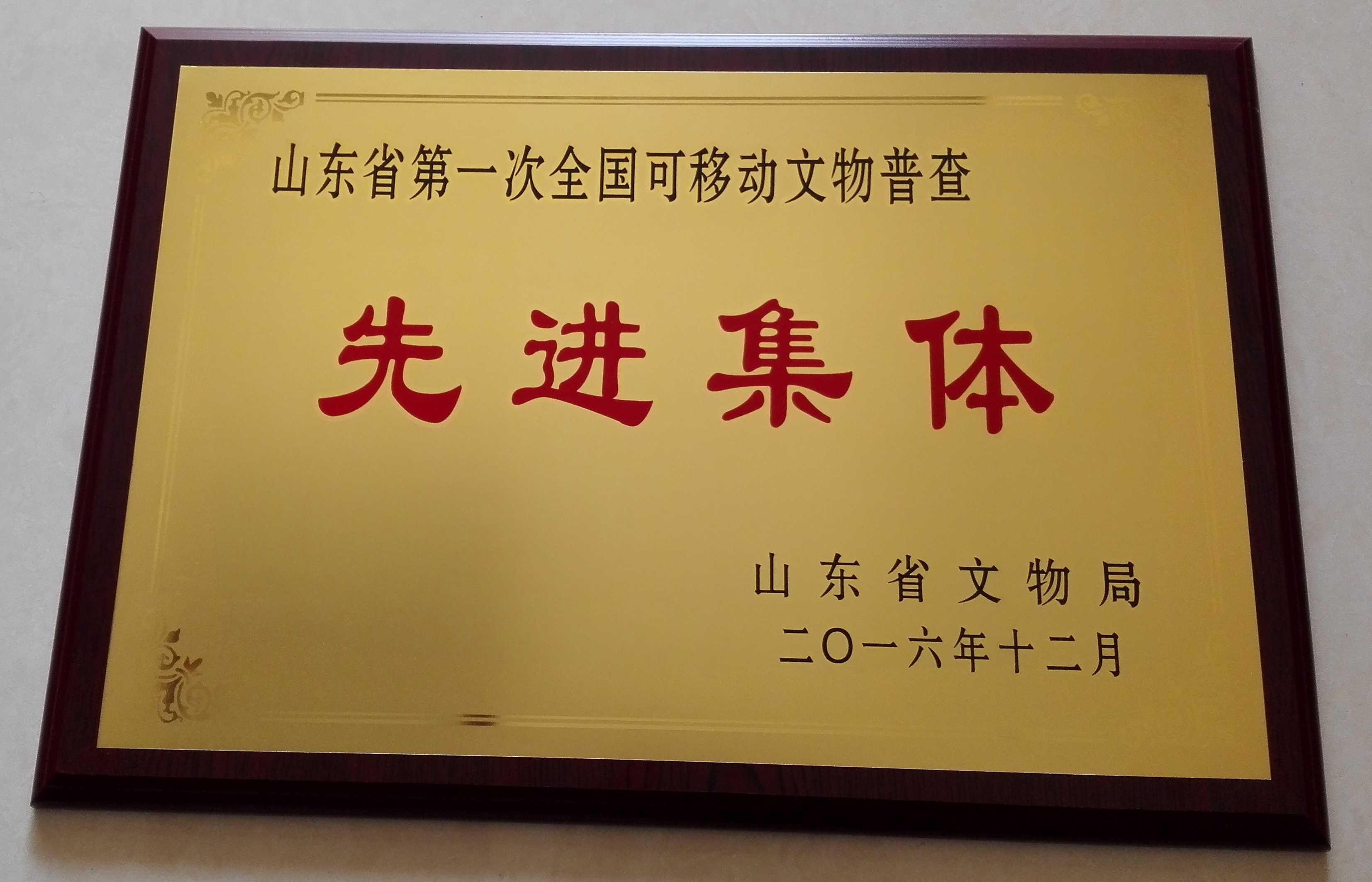 2016年12月15日,我省召开全省文物工作电视会议,会议对全省第一次全国可移动文物普查工作进行了总结表彰,我院喜获“山东省第一次全国可移动文物普查先进集体”称号。