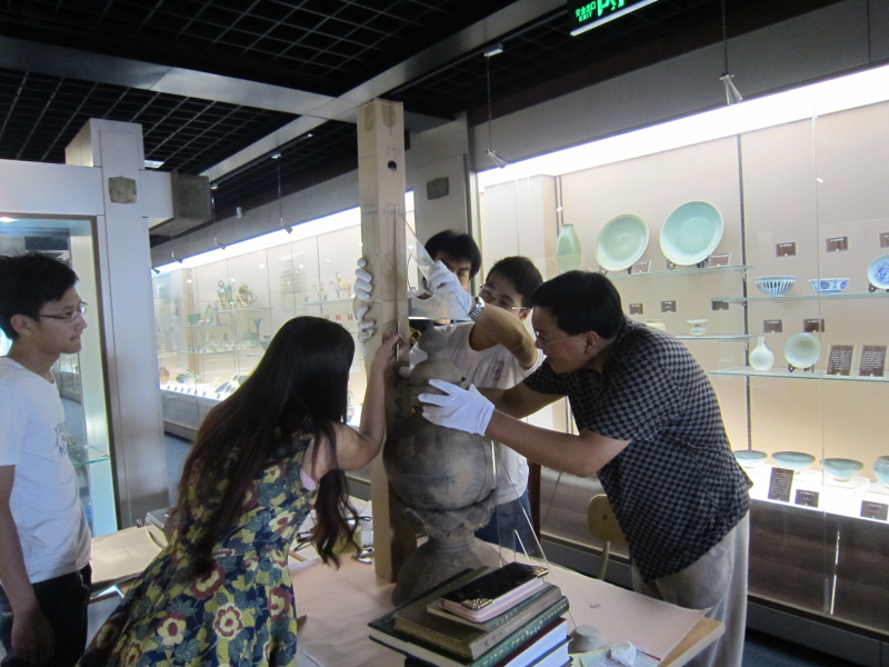 2015年6月中旬接到省文物局和学校下达的可移动文物普查任务之后,学院领导班子召开专门会议研究此事,委派邵文臣老师具体负责此项工作。邵文臣老师接受任务之后,在省文物局普查办的指导和学校领导与学校普查负责机构社科处的领导和协调下,从考察了解所需仪器设备和用品并完成采购,到分批邀请省文物局、省博物馆、济南市文化局、山东大学和省考古所等不同文物考古领域的多位专家学者前来帮助鉴定传世和采集文物的真伪和年代(我院所藏文物绝大部分为传世和采集品,鉴定真伪和年代是做好普查工作的前提)。从带领学生志愿者(先后有11位学生参与,最多时6人,最少时1人)接收培训、熟悉普查规程和要求,到文物除尘、测量称重、拍照、模板录入和上传数据(由于网路堵塞,数据上传国家文物局系统基本是利用深夜和早晨文博系统上传的间隙时间段完成的)。至2015年9月下旬(主要是暑假期间),为我院收藏的全部文物(包括未普查的少量赝品)按普查要求测了尺寸、称了重量、拍了照片,并观察记录了其完残状况和保存状态,同时也为在展的文物复仿制品测量了数据,并为全部文物和在展的文物复仿制品建立了档案。因而在保障质量的前提下,很好地完成了普查和数据上传任务,得到了学校领导和省文物局普查办的好评。以下为普查掠影: