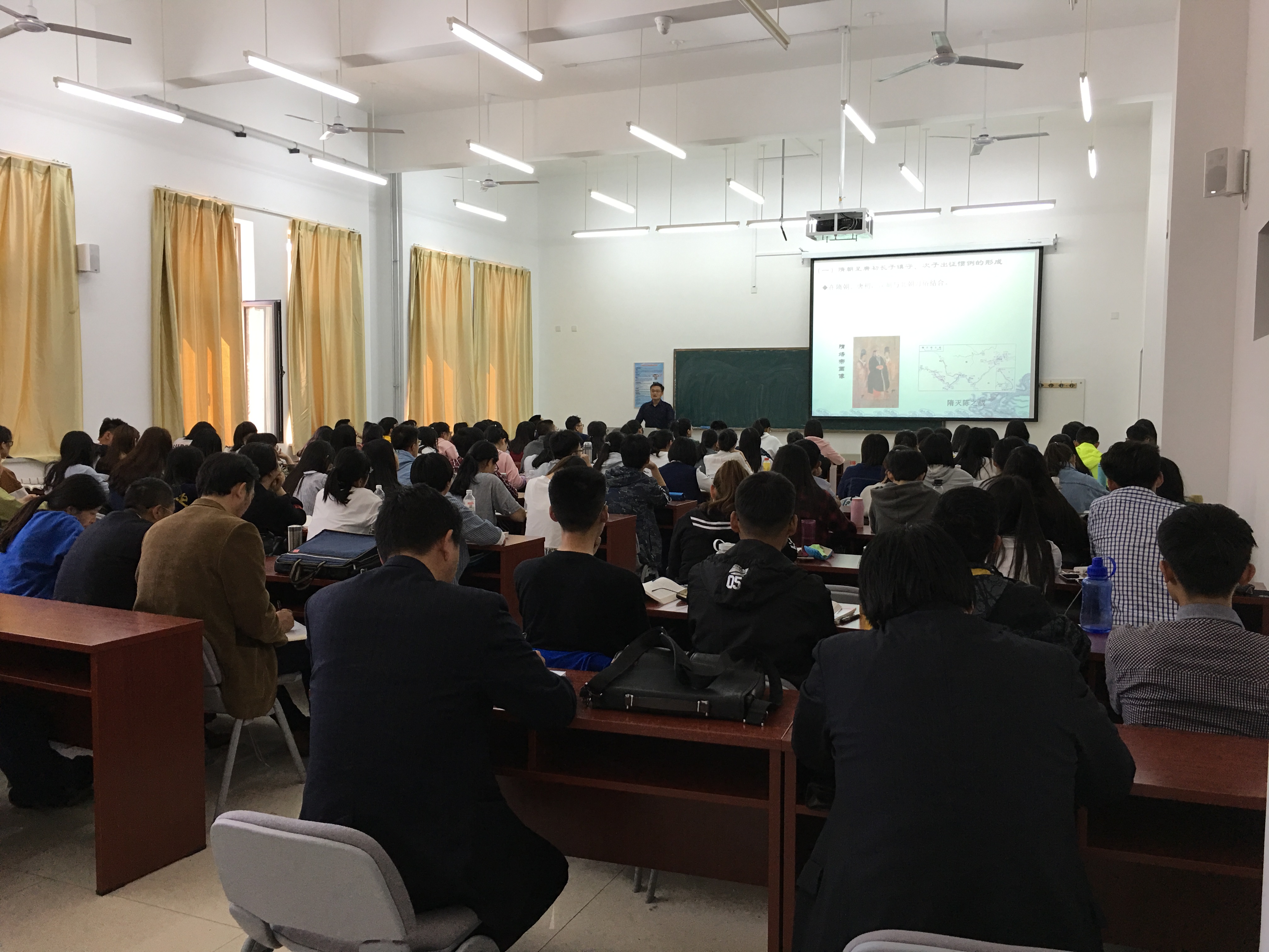 赵树国副教授讲授课程是2016级本科生的专业必修课程——中国古代史(2),本次授课内容为《玄武门之变》。授课过程中赵老师吐字清晰,语言流畅,通过教学课件提供丰富的文字和图片资料,配合自己风趣幽默地讲解,使他的讲课既生动形象,又有学术深度,受到了同学们和参加观摩教学的老师们一致好评。