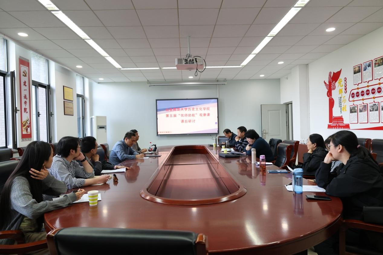 魏永生、李晓华、阎静、孙小娇等学院督导组成员以及近五年入职的青年教师于亦璇、张圣东、高志伟等结合自身教学实践,围绕课堂设计的层次感构建、多媒体素材的历史场景还原度、课堂提问的启发性策略等维度展开热烈交流。教师代表提出,可尝试在问题链设计中增加“史料对比分析”环节,引导学生自主发现历史细节;在多媒体制作中,建议运用动态时间轴、历史地图交互等技术手段增强教学直观性;针对课堂互动,可探索“小组史料研读—代表汇报—教师点评”的立体互动模式,提升学生参与深度。最后,研讨会总结指出,本次观摩课兼具学术深度与教学示范性,既聚焦重大历史问题,又紧扣学生认知规律,在“史料运用—问题探究—思维培养”的教学链条中展现了成熟的课堂把控能力,为青年教师提供了“从宏观架构到微观操作”的全流程教学范本。