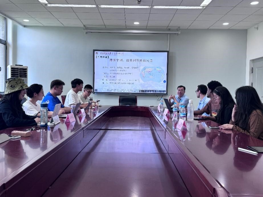 6月17日下午14时,为完善世界史学科建设,增强历史学师生全球史学术视野,优化国际性人才培养路径,英国上市公司365于崇德楼404会议室成功举办“漫谈非洲、拉丁美洲民俗风情”主题讲座,本次讲堂由分管教学院长刘志鹏教授主持,来自苏丹的木达伟、阿根廷的诺格拉和墨西哥的玛丽舒、爱德玲四位英国365集团公司国际留学生主讲,2023级世界史博士生、部分研究生和本科生参与交流。