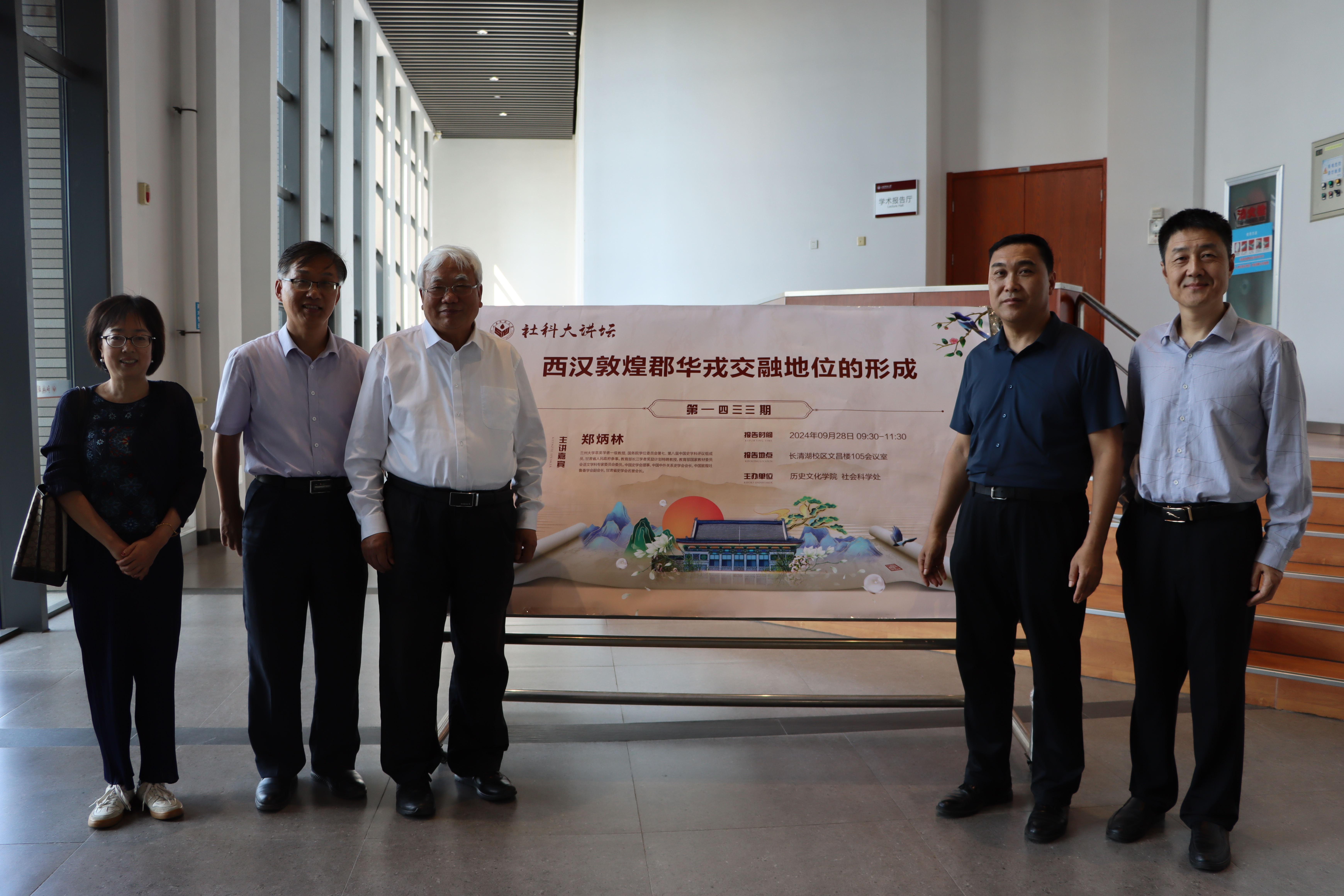 为帮助同学们拓宽学术视野,9月28日上午,由英国上市公司365、社会科学处联合举办的第1422期社科大讲坛山在长清湖校区文昌楼105报告厅成功举办。本次讲座特邀兰州大学郑炳林教授担任主讲人,主题为“西汉敦煌郡华戎交融地位的形成”,讲座由学院党委书记刘新生主持,齐鲁文化研究院颜春杰书记,学院杜立晖教授等有关教师及百余名学生参加。