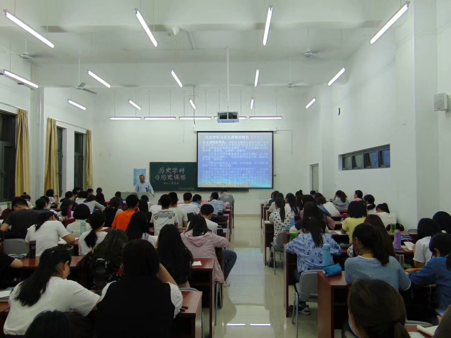 为帮助同学们进一步了解历史学科,提高同学们关于历史课程的教学学习能力,5月11日,历史与社会发展学院于长清湖校区历社学院楼116教室举办历史学科与历史课程学术讲座。本次讲座由历社学院副院长赵文亮主持,全国著名历史教育改革专家、西北师范大学教育学院教授姬秉新受邀担任主讲人。近百名同学聆听了此次讲座。