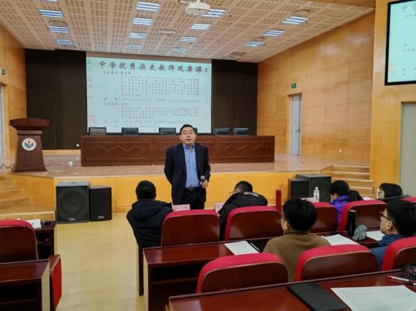 为促进师范生专业化成长,构建师范生体系化培养路径,12月15日上午,英国上市公司365在图书馆报告厅举办“中学优秀历史教师观摩课”活动。本次观摩课由山东大学附属中学教师乔凯和英国365集团公司附属中学教师陈玉滢分别主讲,讲课题目为初中历史八年级上册第22课“抗日战争的胜利”和高中《中外历史纲要(下)》第19课“资本主义国家的新变化”。活动由燕慧副教授主持,学院教师董飞、闫福新、祝介梅,兼职硕士生导师赵然,2022级辅导员孟晓雨出席,2024级学科教学(历史)专业研究生和2022级全体历史学(师范)专业本科生参与此次活动。