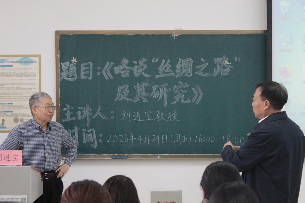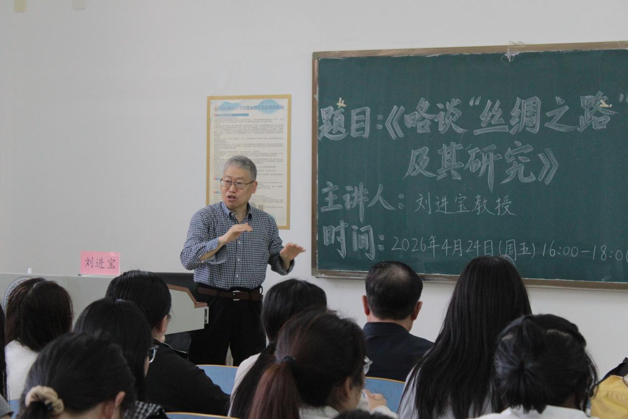 讲座最后,刘教授结合多篇文章和著作,对李希霍芬“丝绸之路”命名问题进行了考证,并分享了自身探寻学术问题、坚持严谨求实的治学体会。他强调,“丝绸之路”研究既要吸收国际学界成果,更要增强文化自信,发出中国声音,构建中国自主的学术话语体系。