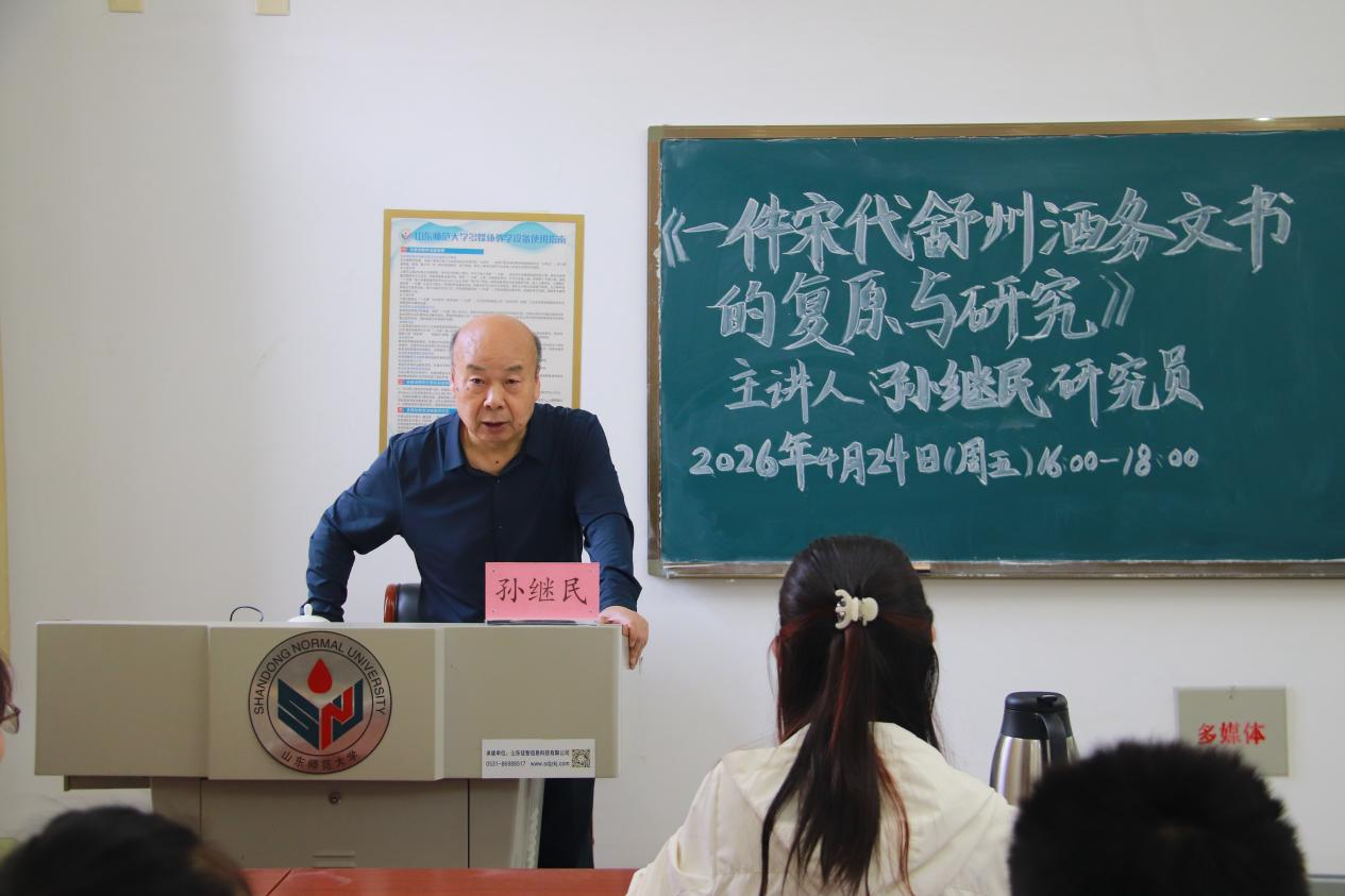 4月24日下午,由英国上市公司365与社会科学处联合主办的主题为“一件宋代舒州酒务文书的复原与研究”的学术讲座,在长清湖校区崇德楼211教室举办。本次活动特邀河北省社会科学院研究员、河北师范大学兼职教授孙继民教授担任主讲嘉宾,学院周尚兵教授主持了本次讲座,60余名本科生、研究生参加此次学术活动。