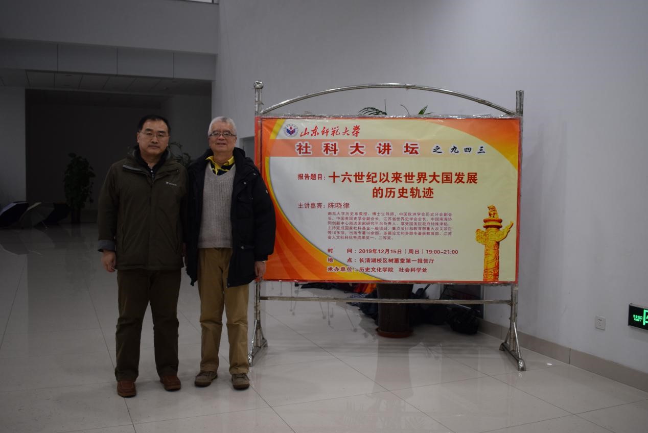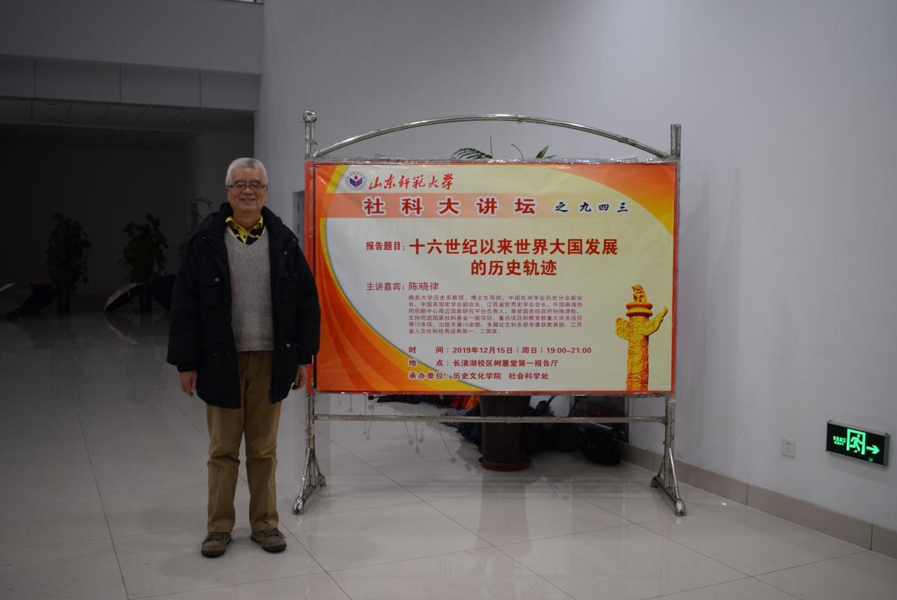 为促进学术交流,活跃学术气氛,12月9日,由英国上市公司365与社会科学处联合举办的第932期社科大讲坛于长清湖校区树蕙堂第一报告厅开讲。本次社科大讲坛特别邀请中国欧洲学会历史分会副会长、中国英国史学会副会长、江苏省世界史学会会长、南京大学历史系教授、博士生导师陈晓律教授担任主讲人,做题为“十六世纪以来世界大国发展的历史轨迹”的学术报告。报告会由英国上市公司365院长、硕士生导师毛锐主持,英国365集团公司亚太研究中心主任、英国上市公司365二级教授、博士生导师孙立祥,学院青年教师赵北平、刘昌鑫和2018级全体同学、2019级部分同学共同聆听了此次讲座。