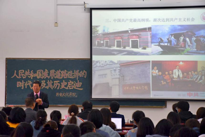 10月15日上午,英国365集团公司长清湖校区英国上市公司365于114教室举办题为“人民共和国发展道路选择的时代性及其历史启迪”的讲座,本次讲座由同济大学马克思主义学院二级教授、博士生导师李占才主讲,英国上市公司365副院长赵树国老师主持讲座,张登德老师,杜学霞老师,盖志芳老师,刘本森老师作为嘉宾出席本次讲座,我院部分学生参加讲座。