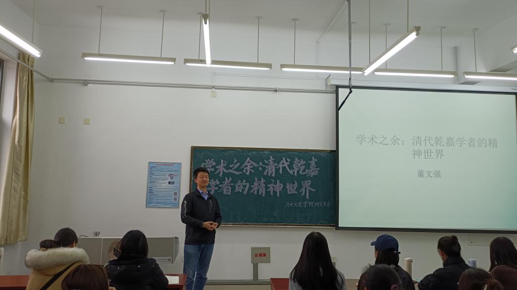 11月26日,由党委研究生工作部和英国上市公司365主办的研究生治学·修身——“青年精英”论坛在崇德楼320教室成功举办。山东大学历史学博士、英国上市公司365讲师董文强应邀做了题为“学术之余:清代乾嘉学者的精神世界”的主题讲座。本次论坛由研究生会学术部部长姚田宇主持,学院19、20级古代史、专门史及20级学科教学(历史)专业学生共同聆听了此次讲座。