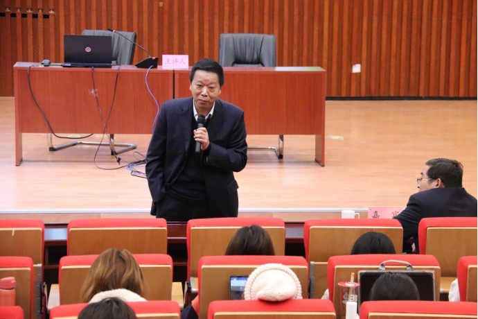 讲座正式开始前,楼建军向大家介绍主讲人段进生的主要教学经历及成果,结合即将开始的微格教学和教育实习指明教学设计的重要性。讲座伊始,段进生用其赴济南某校视导时一位初中教师对“文景之治”概念模棱两可的案例,引出历史学科核心素养的提出背景,并通过中共十八大的报告强调其重要性,阐明其包括唯物史观、时空观念、史料实证、历史解释、家国情怀五个方面,并就每一部分做出介绍和要求,最后用“三维目标”再次强调要让历史学科素养在历史教学中落地。随后,段进生从核心素养过渡到教学设计。他先对其做出概念界定,针对设计流程做出内容指导。紧接着,段进生借助“西汉建立和‘文景之治’”的教学案例,详细介绍历史教学设计的基本特征:第一是教学立意鲜明化,要有明确的历史教育价值取向。他通过本课“注重民生,休养生息”的立意作为案例教导同学们找准教学的中心内容所在。第二是教学目标具体化,他强调教学要注重融合性表述、灵活性渗透,以时空观念和史料实证为切入点,以唯物史观为统领,以历史解释能力和家国情怀品质为目标。第三是教学结构板块化,他借助教学案例的模块设计说明优秀的模块设计有利于构建更科学的教学体系。第四是教学过程史料化,“史料为史之组织细胞”。段进生通过导读和分析部分的案例强调史料的重要价值。第五是教学评价多样化,他引用叶小兵、包为民的观点,巧妙融入济南市2019年历史学科学业水平测试真题,得出要注意教学的问题导向性的结论。最后,段进生指出,“对于教学设计,态度最重要”。他希望同学们都能主动且坚持,从而带领更多中学生爱上历史课。讲座结尾,楼建军对讲座进行点评。他首先对段进生的报告表示充分肯定和感谢,同时再次强调了五大素养的重要性。最后楼建军表达了对同学们的殷切期望,希望同学们在即将来临的教学实践中有所收获和成长。本次讲座在同学们热烈的掌声中落下帷幕。