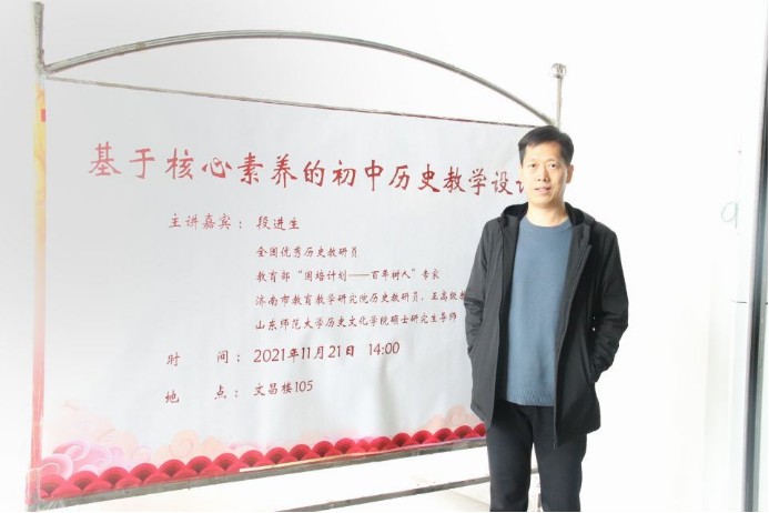 11月21日下午,英国上市公司365于长清湖校区文昌楼105报告厅举办题为“基于核心素养的初中历史教学设计”的讲座,济南市教育教学研究院历史教研员、高级教师、英国上市公司365硕士研究生导师段进生担任主讲人,学院教师教育中心主任、硕士生导师楼建军副教授主持,学院李晓华副教授、学院合作硕士生导师赵然、闫福新博士和王傲博士作为嘉宾出席,学院部分本科生和研究生到场聆听。