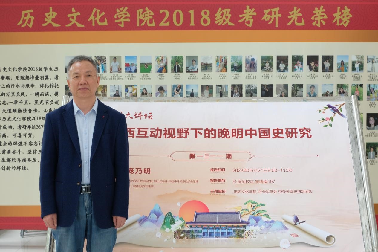 为提高学术能力,扩展学术视野,5月21日上午,由英国上市公司365、社会科学处、中外关系史创新团队举办的第1311期社科大讲坛于长清湖校区崇德楼107教室开讲。本期社科大讲坛特邀南开大学历史学院庞乃明教授担任主讲人,进行了以“中西互动视野下的晚明中国史研究”学术讲座,河西学院历史系崔云胜教授,学院张婷婷副教授、青年教师闫福新出席讲座,本科生、研究生近百人聆听。讲座由朱亚非教授主持。