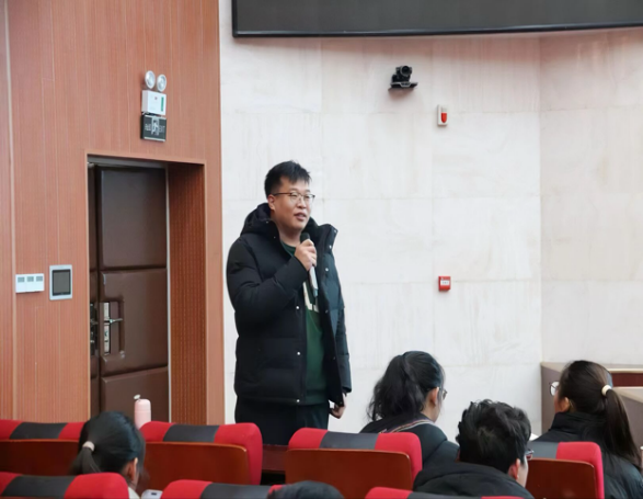 讲座正式开始之前,楼建军向大家介绍了主讲人王晓燕的主要教学经历和丰硕教学成果,强调班主任工作在教师生涯中的重要性,并希望同学们能够有所收获。