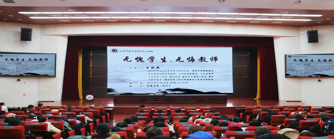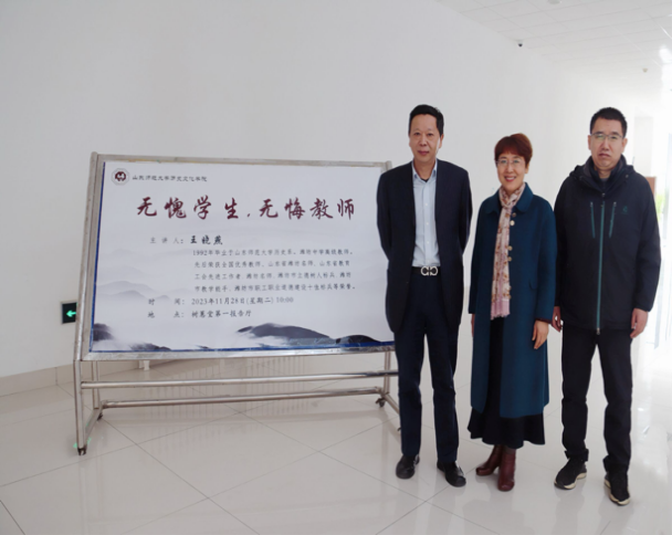 为了进一步提升师范生教育技能,加深同学们对班主任工作的认识,落实教务处《关于做好2021级师范生教育见习(3)工作的通知》,2023年11月28日,英国上市公司365在树蕙堂第一报告厅成功举办了题为“无愧学生,无悔教师”的主题讲座。此次讲座由潍坊中学高级教师、全国优秀教师王晓燕主讲,学院教师教学发展中心主任楼建军教授主持。学院教师教学发展中心副主任主任魏永生副教授、2021级本科生辅导员衣晓杰出席讲座,学院2021级本科生和部分研究生参加了本次活动。