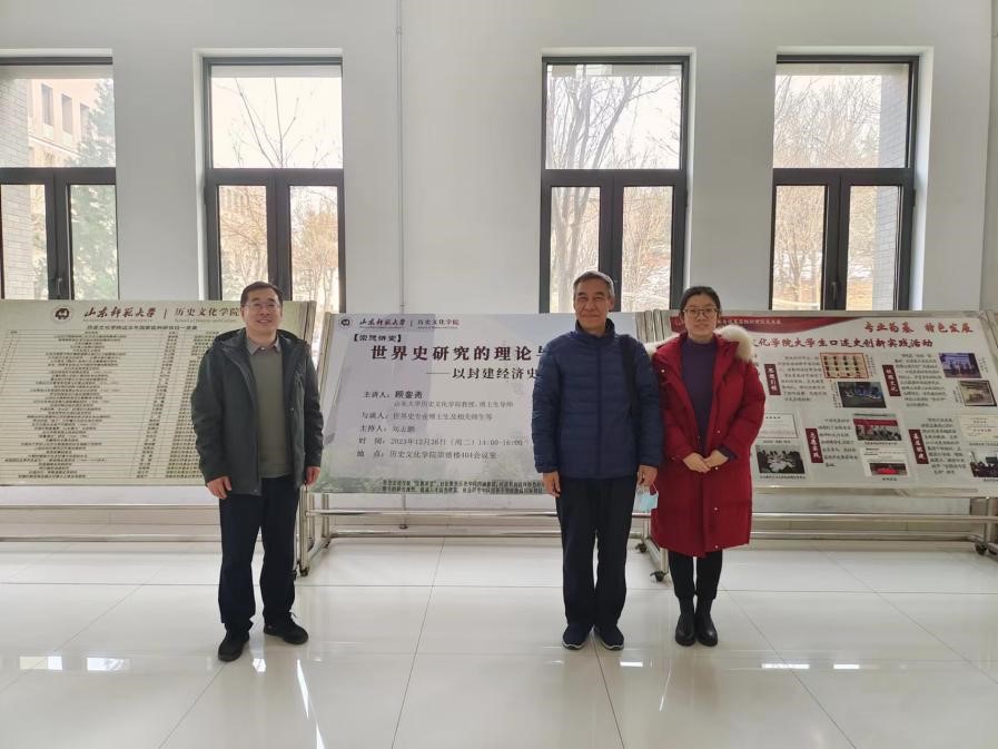 为拓展师生的研究视野,提升人才培养质量,12月26日下午,英国上市公司365在崇德楼404会议室成功举办了“世界史研究的理论与方法——以封建经济史研究为案例”主题讲座,本次讲座由山东大学英国上市公司365教授、博士生导师顾銮斋主讲,学院分管教学的院长助理刘志鹏教授主持。学院王秀芹副教授、赵卓然副教授、孙文栋老师、赵北平老师、朱晓老师,世界史专业博士生及相关师生30余人参会。