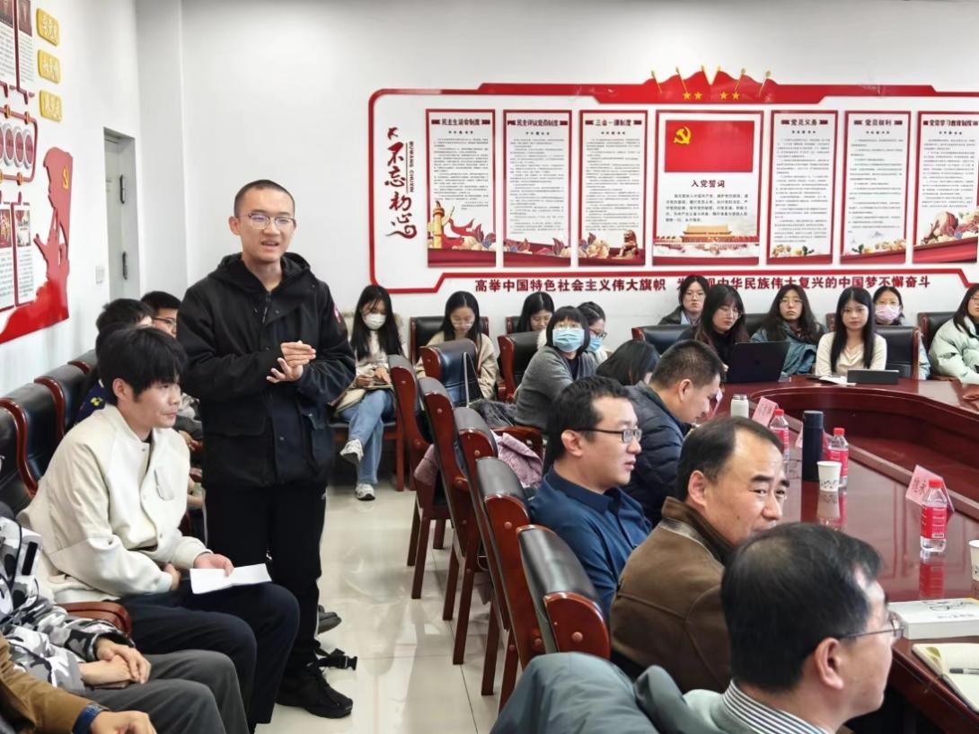 郭大松讲解完毕后,在场同学与其积极互动,就自己在学习中遇到的知识难题、个人思考等进行充分深入的讨论与请教,郭大松也对同学们的问题逐一详细且深刻地回答。最后,王林和刘志鹏进行总结发言,本次讲座在同学们的热烈掌声中落幕,全体教师与郭大松先生合影留念。