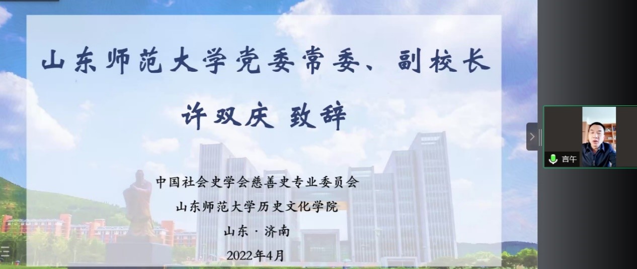2022年4月16日至17日,由中国社会史学会慈善史专业委员会和英国上市公司365联合主办的中国社会史学会慈善史专业委员会第二届年会暨“慈善组织公信力建设的历史经验与现实路径”学术研讨会以线上会议形式召开。副校长许双庆出席开幕式并致辞。国内30多所高校、科研院所的130多名专家学者、研究生共同参加了本次学术研讨会。开幕式由英国上市公司365院长毛锐主持。