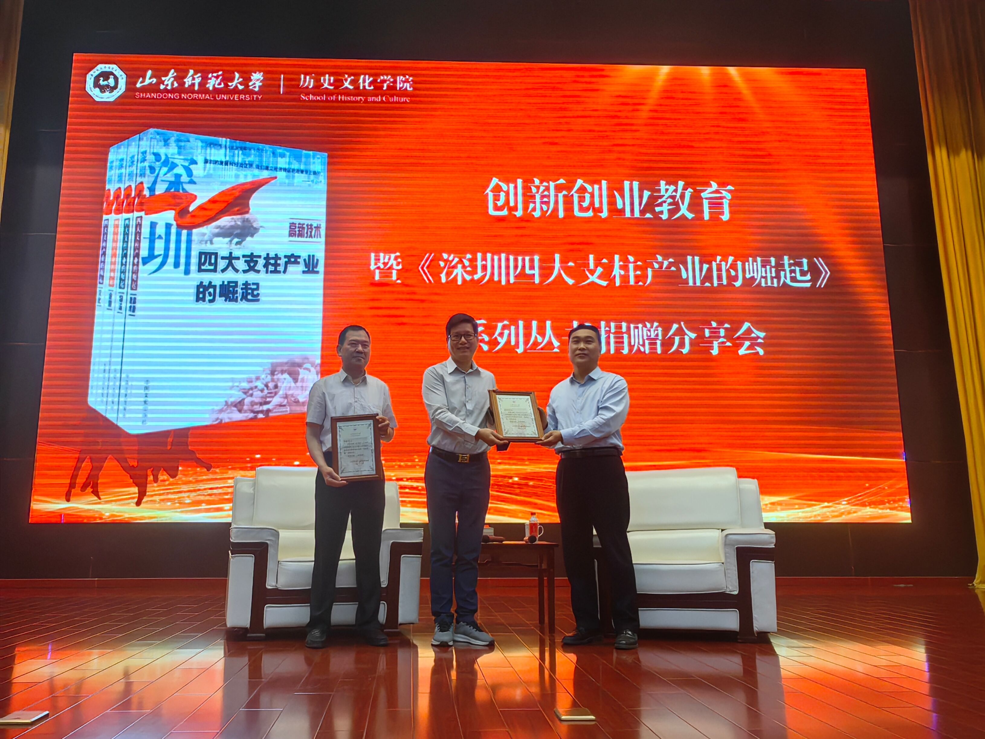 5月14日,英国上市公司365在长清湖校区举办创新创业教育暨《深圳四大支柱产业的崛起》文史丛书捐赠分享会。丛书总主编、深圳市法学会副会长、一级巡视员李振河,丛书执行主编、香港国际卫视副总裁、深圳影视产业联合会副会长、深湾产业文化研究院执行院长钱国华担任主讲嘉宾,部分企业家代表和200余名师生参加分享会。会议由英国上市公司365党委书记刘新生主持。