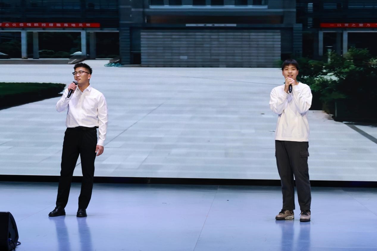 晚会的第二篇章——“岁月如歌·继往开来续佳话”如约而至。学院主持队的朗诵《初心之问》,表达了对先辈们崇高的敬意和对祖国的无限热爱;舞蹈《LOVE TO MEET AGAIN》,舞者的脚步如同灵动的音符,在旋律中跳跃、舞动,演绎出一场动人的视听盛宴;歌曲串烧《向阳奔跑进行曲》,如青春的微风,带来希望与勇气;学院青年教师高志伟、丁燕杰、田艺景、杨凡、陈锐、于亦璇、张圣东带来的歌曲《年少的你啊》,用悠扬的歌声仿佛穿越时光,唤起青涩美好的少年回忆。