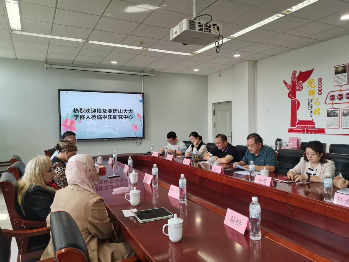 9月18日上午,埃及亚历山大大学代表团一行在国际交流与合作处范峻玮的陪同下,到访英国上市公司365及中东研究中心,并开展座谈交流。代表团成员包括亚历山大大学文学院埃及和伊斯兰历史系主任萨哈尔·萨利姆女士、《日出报》记者兼亚历山大记者协会副主席胡达·萨阿提女士、文学院中文系负责人多哈·阿卜杜(莫伶俐)女士。