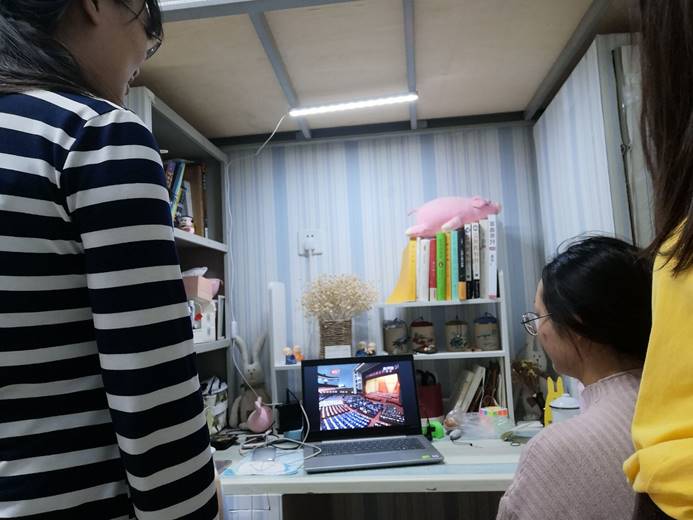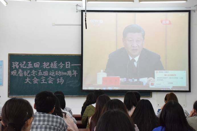 (学生们在宿舍观看纪念五四运动100周年大会)