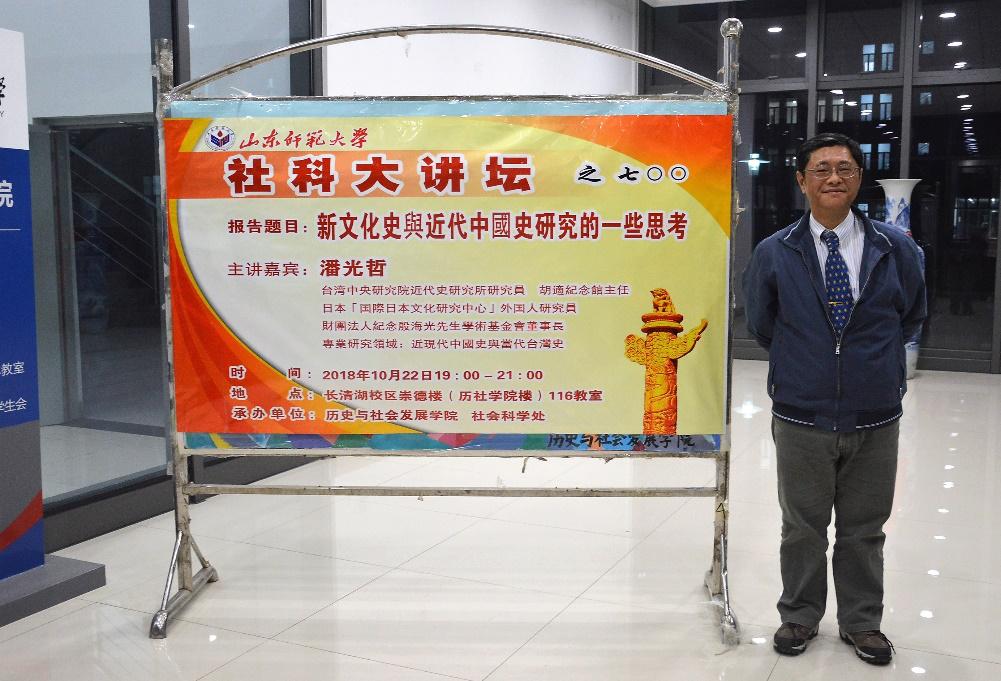 为活跃学术氛围,加强学术交流,10月22日,由历史与社会发展学院和社会科学处联合举办的第700期社科大讲坛在长清湖校区崇德楼116教室开讲。本次社科大讲坛特别邀请台湾中央研究院近代史研究所研究员、胡适纪念馆主任潘光哲博士担任主讲人,做题为“新文化史与近代中国史研究的一些思考”的学术报告。报告由历史与社会发展学院副院长、博士生导师赵文亮教授主持,历史与社会发展学院副院长张登德教授,历史与社会发展学院硕士生导师刘志鹏副教授,学院青年教师刘本森、张世慧、陈静、赵卓然、史慧佳与两百余名本科生、研究生共同聆听了此次讲座。