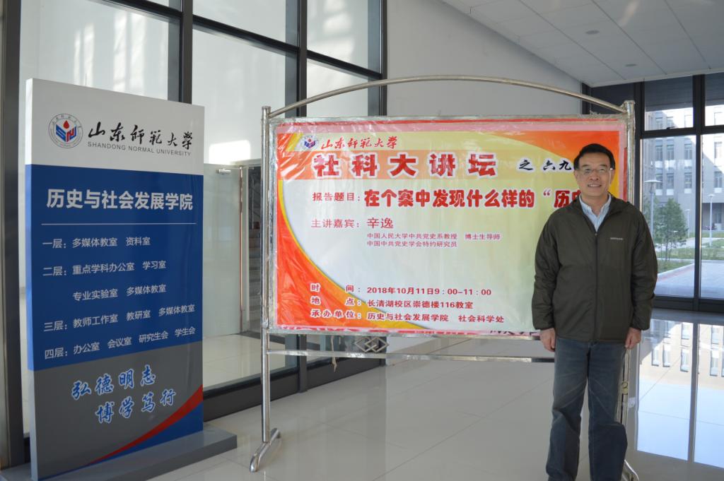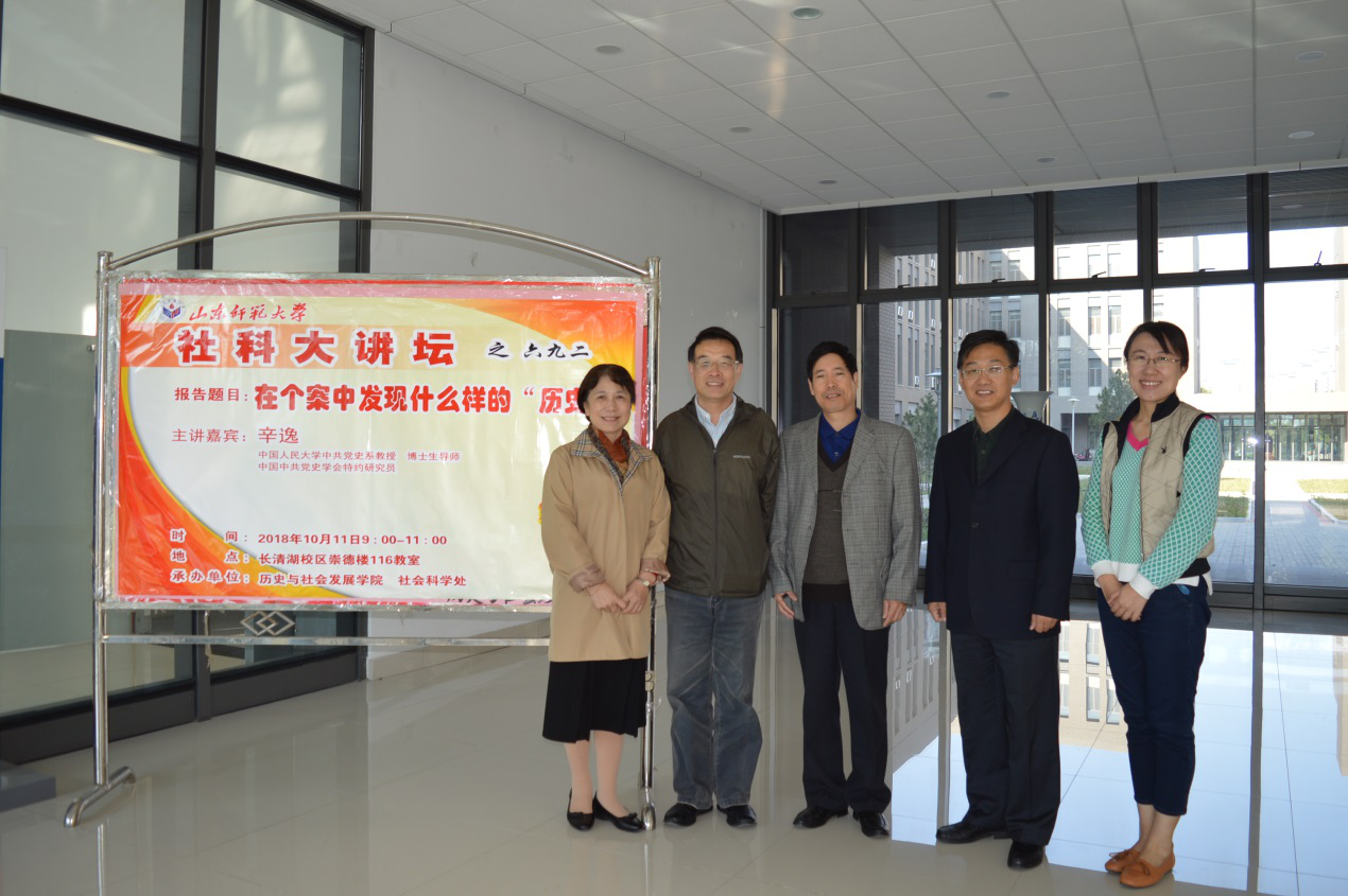 10月11日,由历史与社会发展学院和社会科学处联合举办的第692期社科大讲坛在长清湖校区崇德楼116教室开讲。本次社科大讲坛特邀中国人民大学党史系教授、博士生导师、中国中共党史学会特约研究员辛逸教授担任主讲人,做题为“在个案中发现怎样的‘历史’”的报告,由历社学院副院长、博士生导师赵文亮主持,学院党委副书记颜春杰,学院团委书记魏宁,历社学院社会工作系主任、硕士生导师邢佳佳老师,青年教师刘本森、张世慧与120余名同学共同聆听本次报告。
