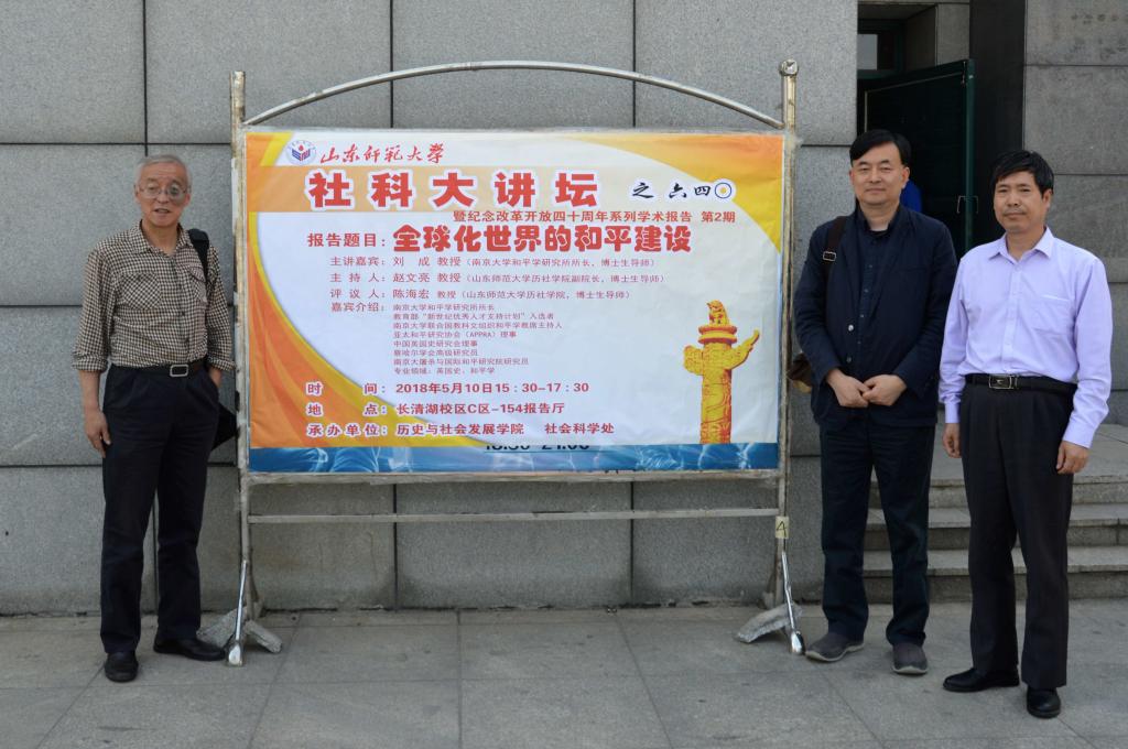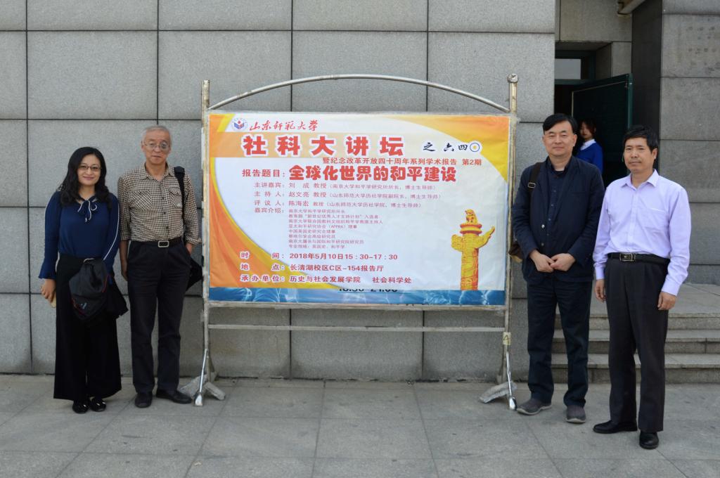 为活跃学术气氛,加强学术交流,积极响应国家“纪念改革开放四十周年”的号召,5月10日,由历史与社会发展学院和社会科学处联合举办的第640期社科大讲坛暨纪念改革开放四十周年系列学术报告第2期在长清湖校区综合教学楼C区154教室开讲。本次社科大讲坛特别邀请南京大学和平学研究所所长,博士生导师刘成教授,做题为“全球化世界的和平建设”的学术报告。报告由历社学院副院长,博士生导师赵文亮教授主持,博士生导师陈海宏教授担任评议人,学院内外300余名研究生、本科生共同聆听了此次讲座。
