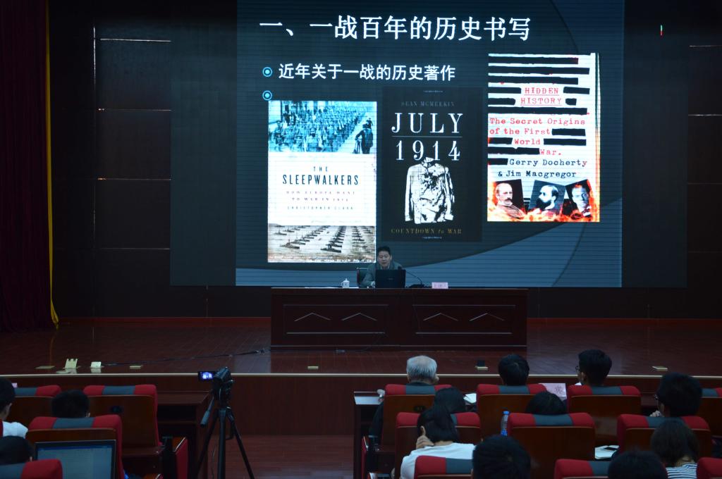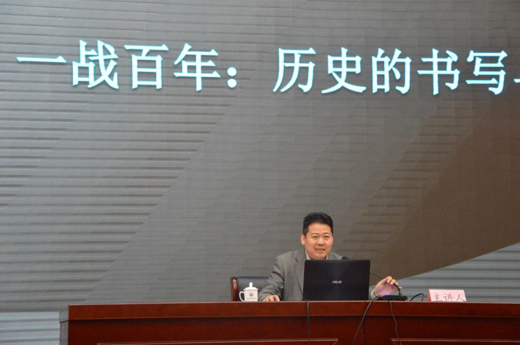梁占军首先以第一次世界大战结束一百周年为契机分析中国目前面临的国际形势。他指出在新时代背景下,贸易战已经打响,在世界眼中“中国威胁论”已经形成,二战结束及改革开放以来,中国的快速崛起、发展、壮大,已成为欧美大国发展称霸道路上的一大阻碍。他简略比较了德国和中国在一次大战后和二次大战后的发展,指出现实的国际关系格局处于变化之中,而国家之间矛盾愈发激烈且不可避免。接下来,梁占军向大家介绍了全世界近年来关于第一次世界大战的历史著作。他通过介绍不同主题、领域的研究著作,指出国内外对一战历史研究持续升温,同时研究视角也在不断变化。其中,研究领域涉及一战起源、作战前线、战后影响等。他进一步总结随着全球化的不断深入,多国史料互证成为可能,史学家跨国合作使相关研究逐渐细化。国际学术界对一战的研究从主要国家开始向深度、广度扩展,开始关注个体、华工、普通人、士兵和决策者,以及社会精英的活动、贡献和感受;除重点关注美、英、俄、德等参战大国外,还关注奥匈帝国、土耳其、非洲、印度等帝国边疆地区,殖民地的兵役等。随后梁占军阐述了一战成为中国主动参与国际事务的契机,使中国开始为世界列强重视,对其后的“五四”运动等一系列重大事件都有重大作用,是中国从被动闭关锁国走向主动的分水岭,是走向世界的第一步。他强调对一战爆发的原因也要多角度分析而不能只归咎于德国,例如近年来国内外普遍认可的塞尔维亚说、大国集体说等都有其值得借鉴的地方。一战之前列强认为战争是解决政治问题的工具,是走向海外的法宝,而为达目标不择手段;而一战之后和平主义思潮泛滥,一些强国不再以战争作为推行政治的主要手段。但是,观念的变化却导致防患能力下降,警戒松懈而爆发二战,使列强深刻认识到战争的危害以及战争的作用。虽然在当今国际关系的权力转移中,崛起国与守成国之间矛盾不可逆,但核武器等新型武器的发展和列强战争观念的转变、和平道义的制约,使得一战的历史悲剧可以避免。