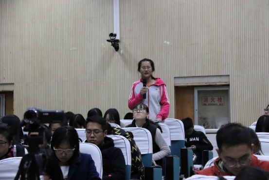在11月6日上午的第三场报告“天人合一与人定胜天”中,孙若怡从人定胜天的角度切入,解释了天人合一的内涵;同时,她借助古代中国的诗歌、绘画等实例向同学们具体阐述了“与天共生、合二为一”的中国哲学思想。此外,孙若怡从科学革命新典范的建立、宗教上的除魅去神化和欧美工业资本主义的发展三个方面入手,向同学们详实阐述了西方科学哲学的利益化过程。紧接着,孙若怡又对近代以来中国在国际舞台上的表现做出反思,讲述了自鸦片战争以来无数仁人志士心怀中华民族伟大复兴的梦想,学习西方先进技术的事迹,以此来号召同学们通过积极传承中华传统文化来弥补西方文化的疏离感,弘扬天人合一的哲学观。