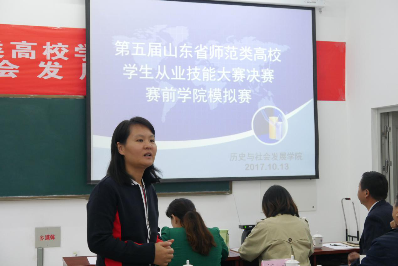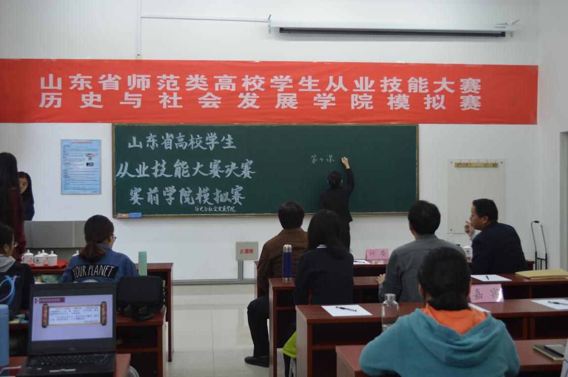 为进一步提升师范生教学技能、实践能力和综合素质,10月13日,历史与社会发展学院于长清湖校区历社学院综合楼107教室举办第五届山东省师范类高校学生从业技能决赛赛前学院模拟赛。校教务处副处长刘浩副教授,学院党委副书记颜春杰副教授,校教务处教学督导科科长丁同楼老师,学院历史教师教育中心主任、硕士生导师楼建军副教授,学院学科教学(历史)硕士学位点负责人、硕士生导师仇世林副教授,硕士生导师燕慧博士,山东省实验中学一级教师李明明,济南外国语中学一级教师侯淼出席此次活动并担任评委。百余名学生到场观摩学习。