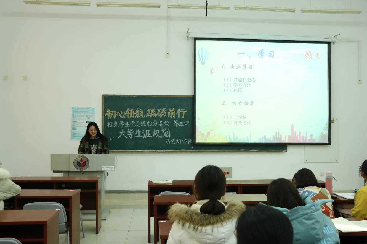 为弘扬榜样力量,引导帮助大一大二学生做好大学生涯规划,11月28日,英国上市公司365于长清湖校区崇德楼114、116教室举办第三期推免学生党员经验分享会。本次会议以“初心领航,砥砺前行”为主题,以“大学生涯规划”为着眼点,由2016级学生党员刘书宁、王新雪担任主讲人,2018、2019级学生代表到场聆听。