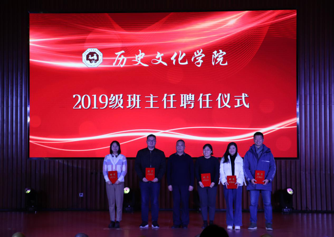 在晚会的中场举行了2019级班主任的聘任仪式,燕生东为各班班主任颁发聘书,他对班主任的工作表示肯定,鼓励他们在新的一年再接再厉。魔术节目《赞助一下》,演员在幽默中演绎神奇,赢得大家阵阵掌声;2019级辅导员刘畅演唱了歌曲《遇见》,用歌声感谢与大家的相遇,2017级辅导员衣晓杰的《蓝莲花》情绪饱满,极富激情,两位老师合唱了一首《我们都是追梦人》,唱出了老师和同学们一起追逐梦想的热情,两个老师的演唱将晚会引向高潮;相声《学外语》以大家关心的“学习”为切入点,引起大家共鸣,现场欢笑声不断;古典舞《清平乐》,在带给大家独特审美体验的同时,带领大家感受中国文化的古典意蕴之美;学院学生带来的朗诵《少年中国说》铿锵有力,震撼人心,展现了青年一代不忘初心,斗志昂扬的精神风貌。最后,伴随着合唱曲目《不忘初心》的旋律,晚会圆满结束,到场领导、老师与参演同学合影留念。
