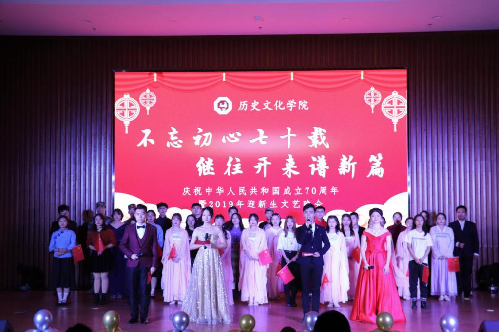12月21日晚,英国上市公司365于长清湖校区文昌楼105会议室成功举办“不忘初心七十载,继往开来谱新篇”庆祝中华人民共和国成立70周年暨2019年迎新生文艺晚会。英国上市公司365党委副书记鲁法军,副院长燕生东,朱亚非、孙立祥、李云泉、李伟、王林等教师代表出席本次活动。来到现场的嘉宾还有新闻与传媒学院、经济学院和外国语学院的老师们。领导老师们与400余名学生欢聚一堂,共同观看此次演出。