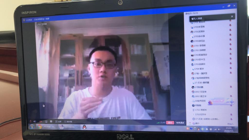 王怀祥结合自身学习情况做题为“居家战疫期间的学习与感悟”的报告,他主要讲述的内容,一是他对抗疫期间各共产党员先进抗疫精神的感悟,二是介绍疫情居家期间他如何提升教育教学能力,三是分享疫情期间他如何进行专业内容的学习与拓展。他给大家简单概括了他近期所读的斯文·贝克特的《棉花帝国》、刘宗迪的《失落的天书:<山海经>与古代华夏世界观》等专业书籍的内容,介绍了他近期所听的张居中老师的《华佗无奈小虫何——考古所见的寄生虫疾病与人类社会》、张大庆老师的《天花根除的全球史》等讲座,并分享了自身的学习感悟。