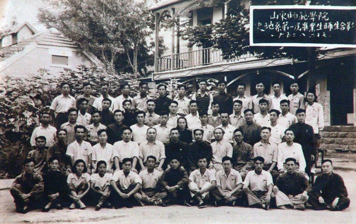 教育背景在一定程度上代表知识结构,也在一定程度上影响其教学研究水准和学术视野。历史系教师具有良好的教育背景,这是开展教学和研究的基础。新中国成立后的最初十年,山师积极贯彻政务院发布的《关于改进和发展高等师范教育的指示》,抓好教学,深入开展教学改革。教师们在这样一个新的学校、新的系科中,保持着较高的教学热情。历史系设有中国古代及中世纪史、中国近代史、中国现代史、世界古代中世纪史、世界近代史、现代史等教研组,并开设相关课程。至于当时老师们的上课情况,我们可以唐志勇回忆安作璋先生的文章中可见一斑。唐老师1956年考入山师历史系,安作璋先生曾为这级学生讲授《中国古代史》课程,他回忆道:“(安作璋先生)教学态度,严肃认真,一丝不苟,自己编写讲义,每堂课都有细心准备的教案。他的课堂讲授,观点明确,言之有据,很有说服力;材料丰富,表述生动,颇具感染力。同学们都喜欢听他讲课。”安先生还注重培养学生钻研问题的兴趣和能力,在讲课中有选择地介绍一些不同学术观点,启发学生去借阅有关书籍,进行比较研究;同时激励同学们在青年时代要勤奋学习,掌握做学问的观点和方法,争取成为史学专门人才。