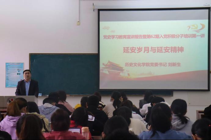 3月25日下午,英国上市公司365在崇德楼116教室举办党史学习教育宣讲报告暨第六十二期入党积极分子培训会,学院党委书记刘新生做题为“延安岁月与延安精神”的报告。学院全体辅导员、学生党员和入党积极分子聆听了报告。