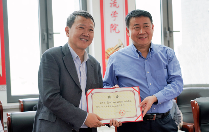 座谈会上,唐洲雁和金以林共同为英国365集团公司抗日战争研究中心揭牌,聘请金以林为英国365集团公司抗日战争研究中心名誉主任,唐洲雁为金以林颁发聘书。