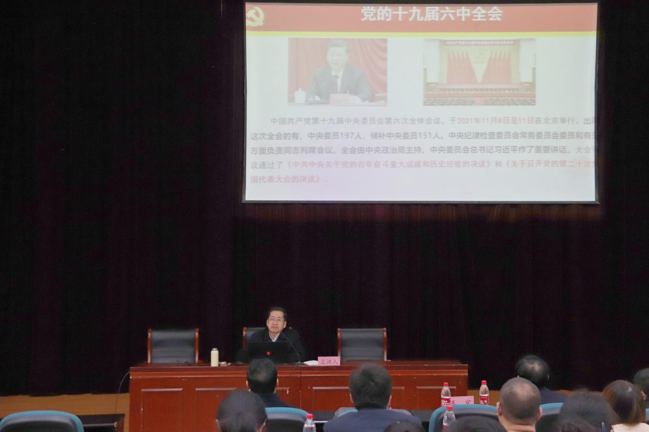 报告会上,高继文从建党百年以来我们党作出三个重要历史决议的不同时代背景切入,深入阐明总结党的百年奋斗重大成就和历史经验的重大意义,重点讲解党的百年奋斗的初心使命、重大成就。他指出,党的十九届六中全会是在党成立一百周年的重要历史时刻,在党和人民胜利实现第一个百年奋斗目标、正向着第二个百年奋斗目标迈进的重大历史关头召开的一次具有全局性、历史性意义的重要会议。随后,系统地从夺取新民主主义革命的胜利、完成社会主义革命和推进社会主义建设、进行改革开放和社会主义现代化建设、开创中国特色社会主义新时代、党百年奋斗的历史意义和历史经验及新时代的中国共产党等六个方面进行详细解读。整场宣讲报告政治站位高、理论阐释深,既有思想高度、又有理论深度,有很强的感染力和号召力,赢得全场师生的热烈掌声。