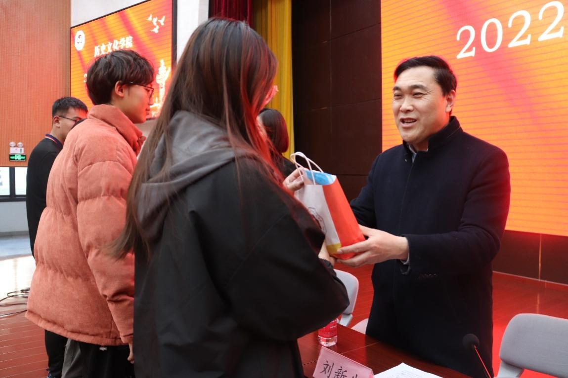 刘新生书记为同学们做动员讲话,他勉励同学们要勇往直前、披荆斩棘,以饱满的精神状态迎接考试,他还特别提醒,在最后的考研冲刺阶段,要调整心态、克服困难,积极应考,争取考出理想成绩。随后,2018级柳清同学代表学院全体考研学生表达了对学院无私培养和老师们温暖关怀的感激,同时鼓励同学们要顶住压力,坚持不懈,用拼搏与汗水攻克学习困难,用实力与信心铸就人生辉煌。最后,学院领导老师们为正在紧张备考的同学们送上“考研大礼包”,殷切的期盼、温馨的嘱托、诚挚的祝愿,让在冲刺阶段的同学们备受鼓舞,动力满满。