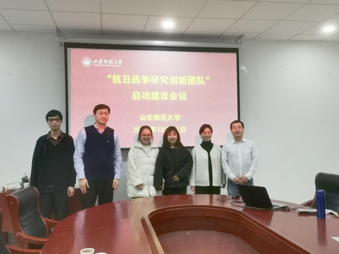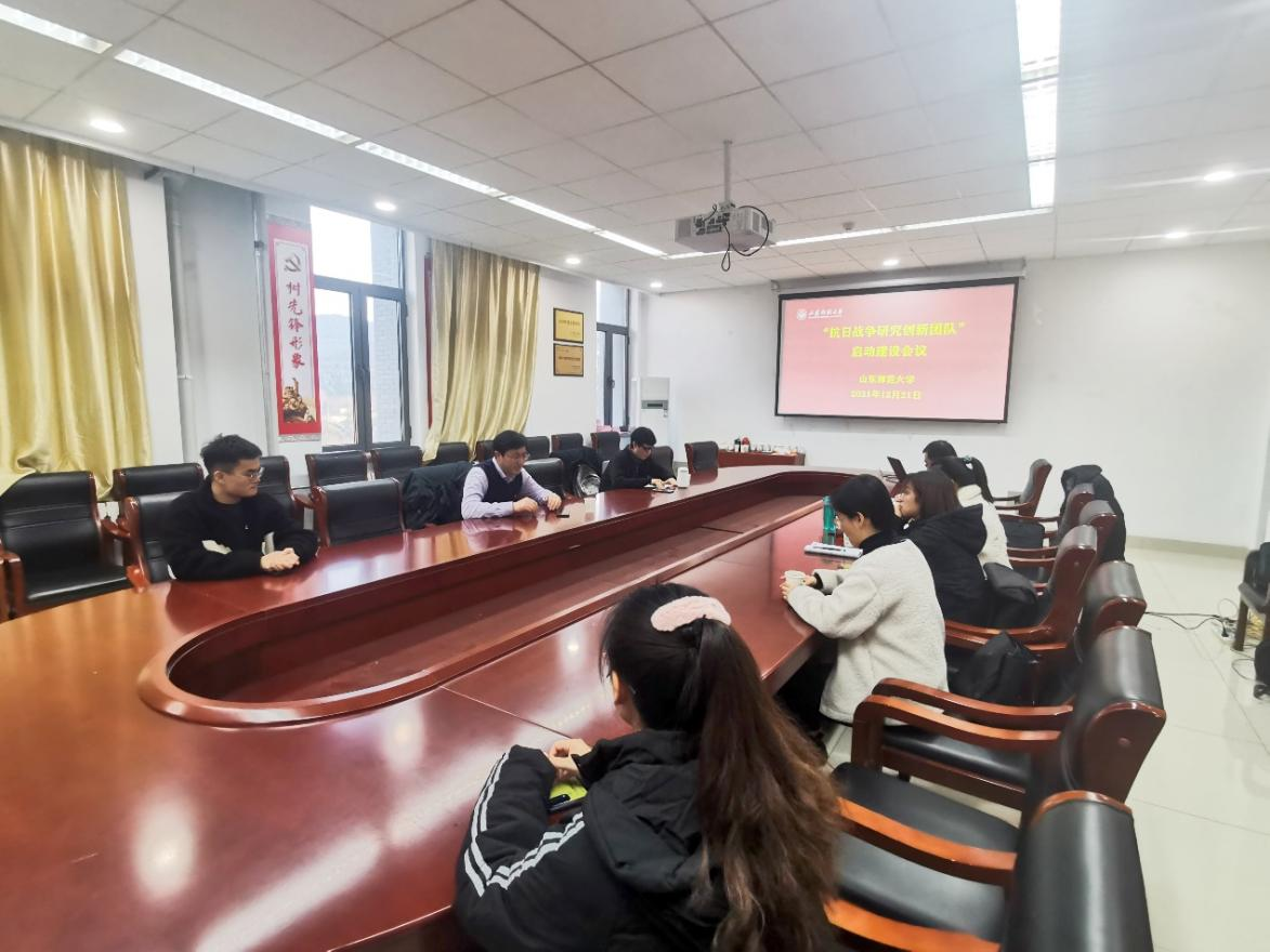 2021年12月21日下午,英国365集团公司“抗日战争研究创新团队”在长清湖校区崇德楼404会议室举行启动建设会议。会议由团队带头人刘志鹏(项目教授)主持,团队成员英国上市公司365青年博士教师冯秀香、王傲,马克思主义学院青年博士教师王雪,文学院青年博士教师邢洋参加会议,校外团队成员山东社科院历史研究所宋暖副研究员和英国上市公司365青年博士教师董文强也提出书面建议,学校社科处顾大伟副处长出席会议并发表讲话。