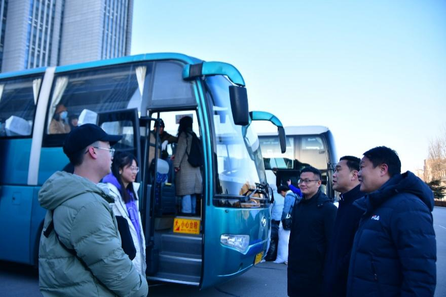 临行前,老师们协助学生将行李搬上车。刘新生与现场的实习生们进行了深入的沟通交流,询问了同学们的实习地点,并对他们进行了教导嘱托,希望同学们能够把握好教育实习的机会,在实习过程中主动总结反思,提高自己各方面的技能,学有所获。鲁法军向实习生们强调了安全问题,叮嘱实习生要提高安全意识,时刻保持警惕。同学们纷纷表示,要将安全第一谨记于心,并珍惜此次实习机会,将专业知识运用于实践中,不负青春韶华。赵树国指出实习生之间要相互帮助照顾,遵守实习学校规章制度。遇到现实困难及时向指导老师反映。多位指导教师随车送实习生到实习单位。