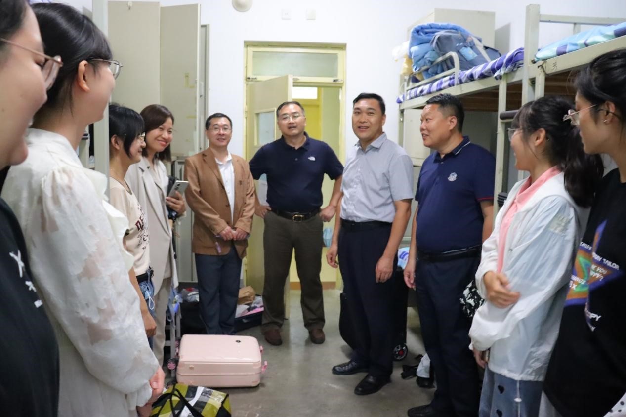 走访过程中,学院领导走进学生宿舍,与同学们进行了亲切的交流,通过详细询问同学们报到情况、入住情况和到校感受,鼓励大家积极适应新环境、融入新集体,遇到困难及时联系辅导员,学院将在第一时间予以协调解决。同时,学院领导查看了宿舍的安全情况,确保宿舍安全稳定。