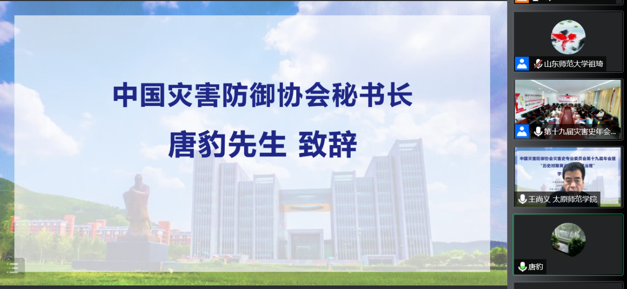 (中国灾害防御协会灾害史专业委员会副主任、山西大学副校长郝平教授致辞)