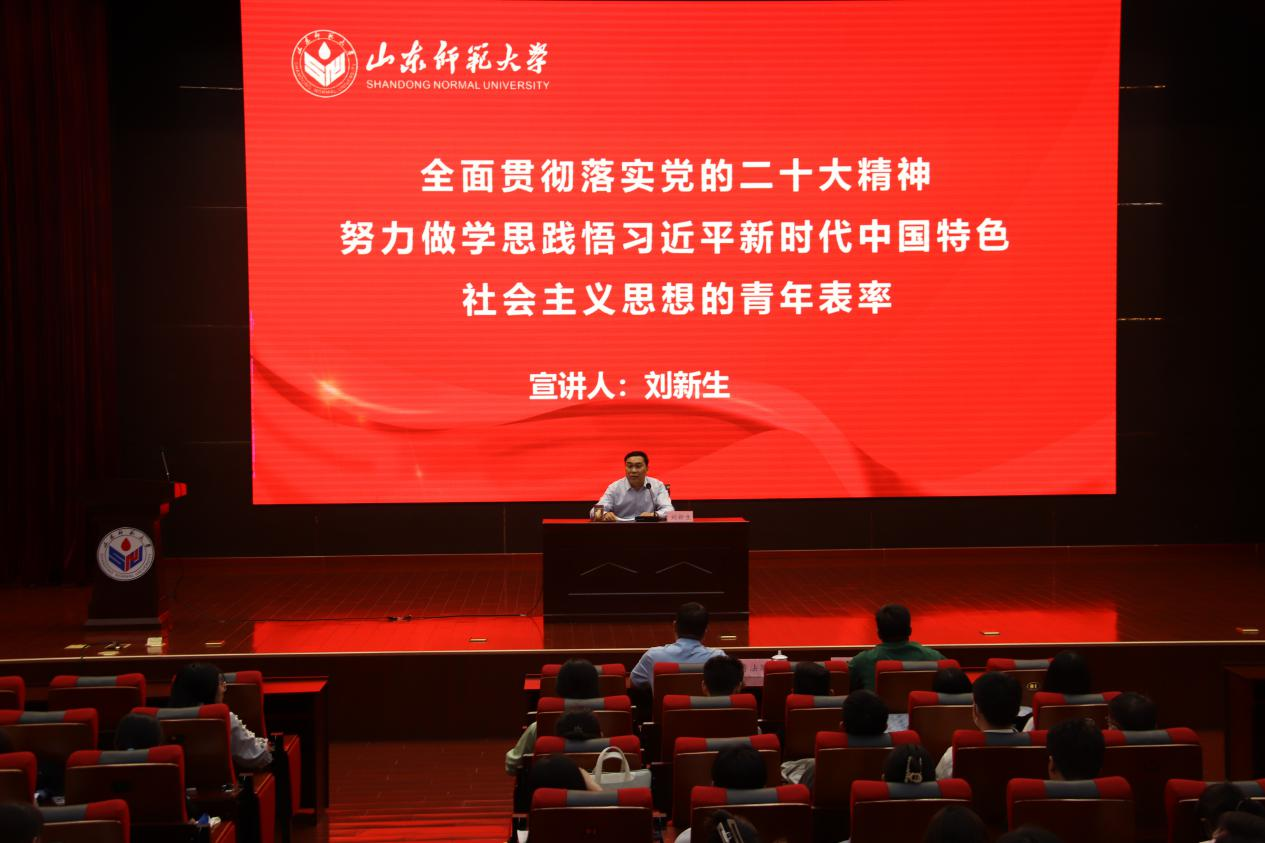 围绕报告主题,刘新生从全面准确把握党的二十大精神、不断开创高等教育高质量发展新局面和努力做学思践悟习近平新时代中国特色社会主义思想的青年表率这三部分展开讲述。一是通过深入阐释关于党的二十大的主题与主要成果、过去5年的工作和新时代10年的伟大变革、马克思主义中国化时代化、中国式现代化等相关内容,使大家更加全面准确把握党的二十大精神;二是围绕学校、学院近年来取得的发展成果,阐述了学院如何深入学习贯彻党的二十大精神,不断开创高等教育高质量发展新局面;最后,刘新生还对同学们提出期望,广大青年要以党的二十大精神为指引,把学思践悟习近平新时代中国特色社会主义思想作为终身必修课,争做有理想、有本领、有担当的新时代青年,为实现中华民族伟大复兴的中国梦贡献智慧和力量。