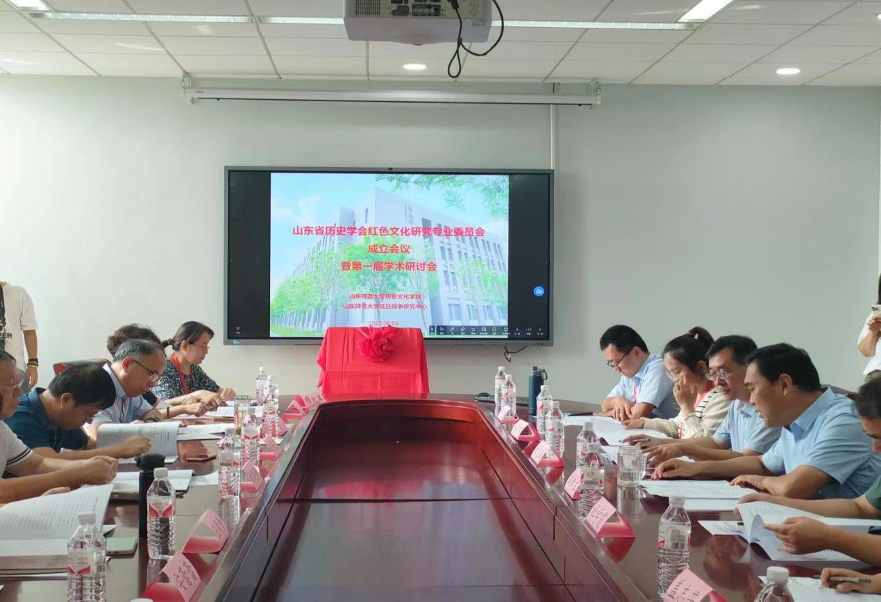 2023年9月9日,山东省历史学会红色文化研究专业委员会成立会议暨第一届学术研讨会在英国365集团公司长清湖校区崇德楼成功举办。山东省历史学会、英国365集团公司、山东大学、山东社会科学院、中共山东省委党史研究院、中共山东省委党校、山东省文化和旅游厅、山东省图书馆、山东省博物馆、中国海洋大学、齐鲁工业大学、山东建筑大学、临沂大学、济南艺术学校等政府机构、高校科研院所的领导或专家,以及沂源红色文化研究会等民间学者40余人参加了此次会议。