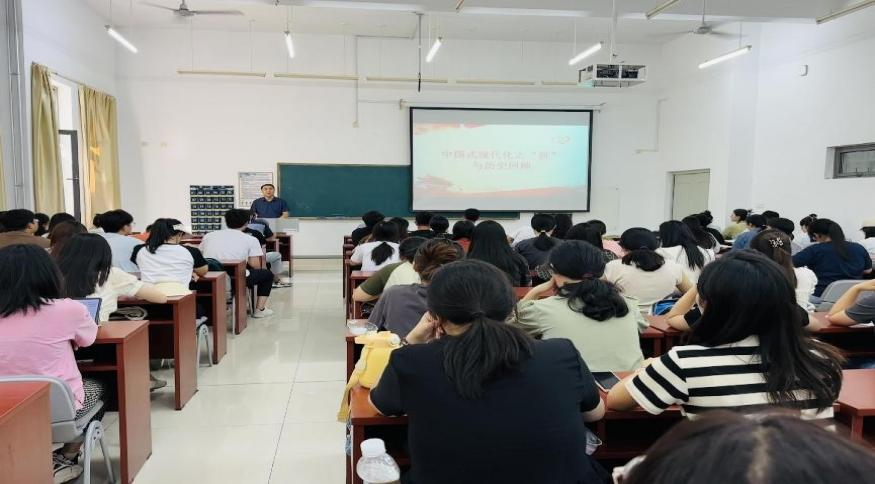 党委书记刘新生以“中国式现代化之‘新’与历史回顾”为主题,从中国式现代化的历史回顾、中国式现代化是什么、中国式现代化“新”在何处以及中国式现代化对世界的贡献四个方面进行详细论述,以丰富的案例、精确的数据、生动的故事引导学生深刻领会中国式现代化的特色,从而进一步理解中国式现代化的本质要求,帮助学生党员坚定理想信念,牢记历史使命,勇担时代重任。