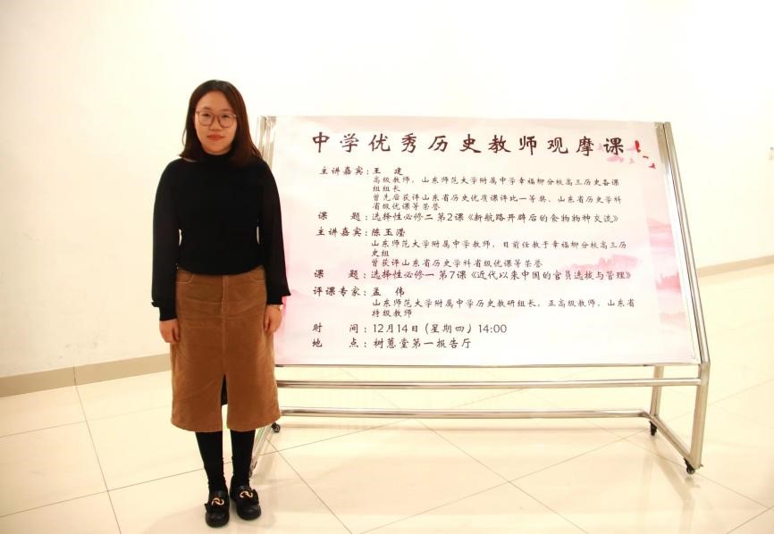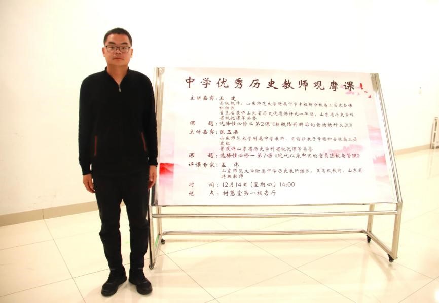 为切实提升师范生课堂教学技能,为师范生积累教学经验创设真实课堂情境,12月14日下午,英国上市公司365于长清湖校区树蕙堂第一报告厅成功举办中学优秀历史教师观摩课活动。本次活动由英国365集团公司附属中学高级教师王建和英国365集团公司附属中学历史教师陈玉滢分别主讲一节观摩课,正高级教师、山东省特级教师、英国365集团公司附属中学历史教研组长孟伟评课并讲座。活动由我院青年教师姬晓灿博士主持。学院赵卓然副教授、2021级辅导员衣晓杰出席本次活动,2021级本科生和部分研究生到场聆听。