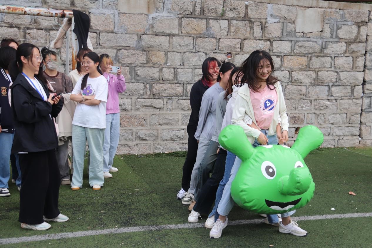 比赛共有“众星捧月”、“充气毛毛虫竞走”、“财源滚滚”、“螃蟹接力跑”、“摸石过河”、“悬崖取水”、“趣味乒乓”、“古风投壶”八个项目,同学们六人一队参与比拼。